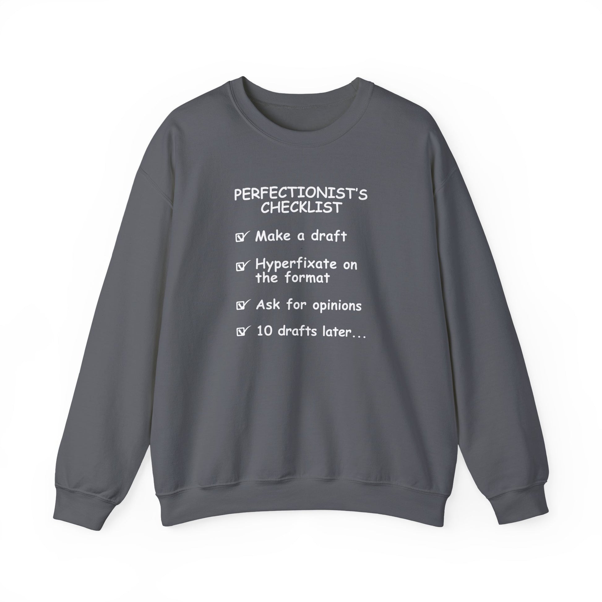 Make a draft. Hyperfixate. Ask for opinions. Ten drafts later… sound familiar? This crewneck is a painfully accurate ode to the perfectionist struggle. Equal parts funny and too real, it’s a badge of honor for writers, designers, and anyone who knows the endless edit loop.