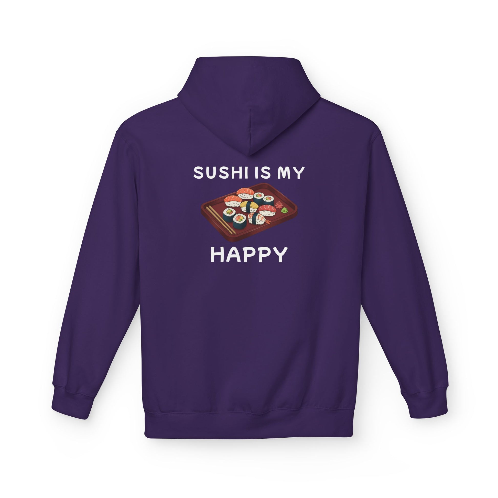 Elevate your casual wardrobe with this unisex midweight fleece hoodie, ideal for food lovers and sushi enthusiasts alike! With its soft fabric and relaxed fit, this hoodie provides comfort for lounging at home or heading out with friends. The playful design featuring 'Sushi Is My Happy' adds a fun touch, making it perfect for sushi brunches, casual gatherings, or cozy nights in. It's suitable for anyone wanting to express their love for sushi!